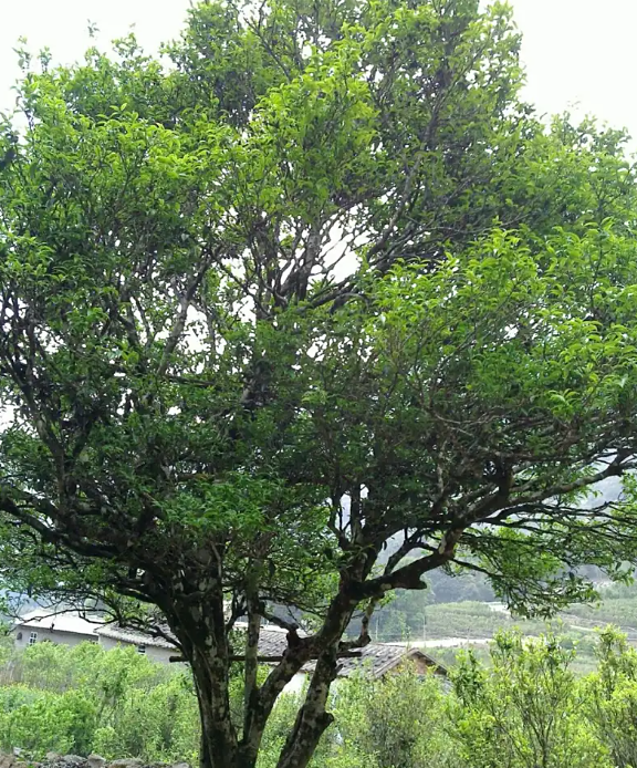 It has grown on a hillside facing east and east, with an altitude of about 1150 meters in the tea garden of Shitouguan District (picture), which is said to be a tree. It has been more than 600 years old, and the ancestor of Wei Weiguang, the ancestor of the management household, was bred from a single plant of the natural hybrid descendants of the Phoenix Narcissus group. The height of the tree is 4.59 meters, the tree is open, the canopy is 6.5 × 6.7 meters, and the main trunk is 8 large stalks on the ground, and the largest branching and stalks 52 cm long, the branch density is medium, the leaves are oblique, and the leaves are 10.4 cm long and 4 cm wide, and the leaves are oblong. Leaf flanks rise, the leaves are dark green, the leaves are flat, the leaves are hard and brittle, the leaf tips are acuminate, the lateral veins of the leaves are 12 pairs, the leaf teeth are thin, shallow, and sharp, there are 28 pairs, and the leaf margins are microwaved. The spring buds germinate before and after the Qingming Festival, and the picking period is before and after the beginning of summer. The buds are light green and have no hair. The germination density is high. The spring shoots are 10 cm long, with 4-5 raw leaves, 3 cm between nodes, and 2 rounds of new shoots every year. The flowering period is from 11 to December, the diameter of the Corolla is 3-3.5 cm, the flower line is 104-138, and the stigma is 3 forks, and the fruiting rate is low. The fruit contains 2-3 tea seeds, and there are many flowers and fruits in recent years.