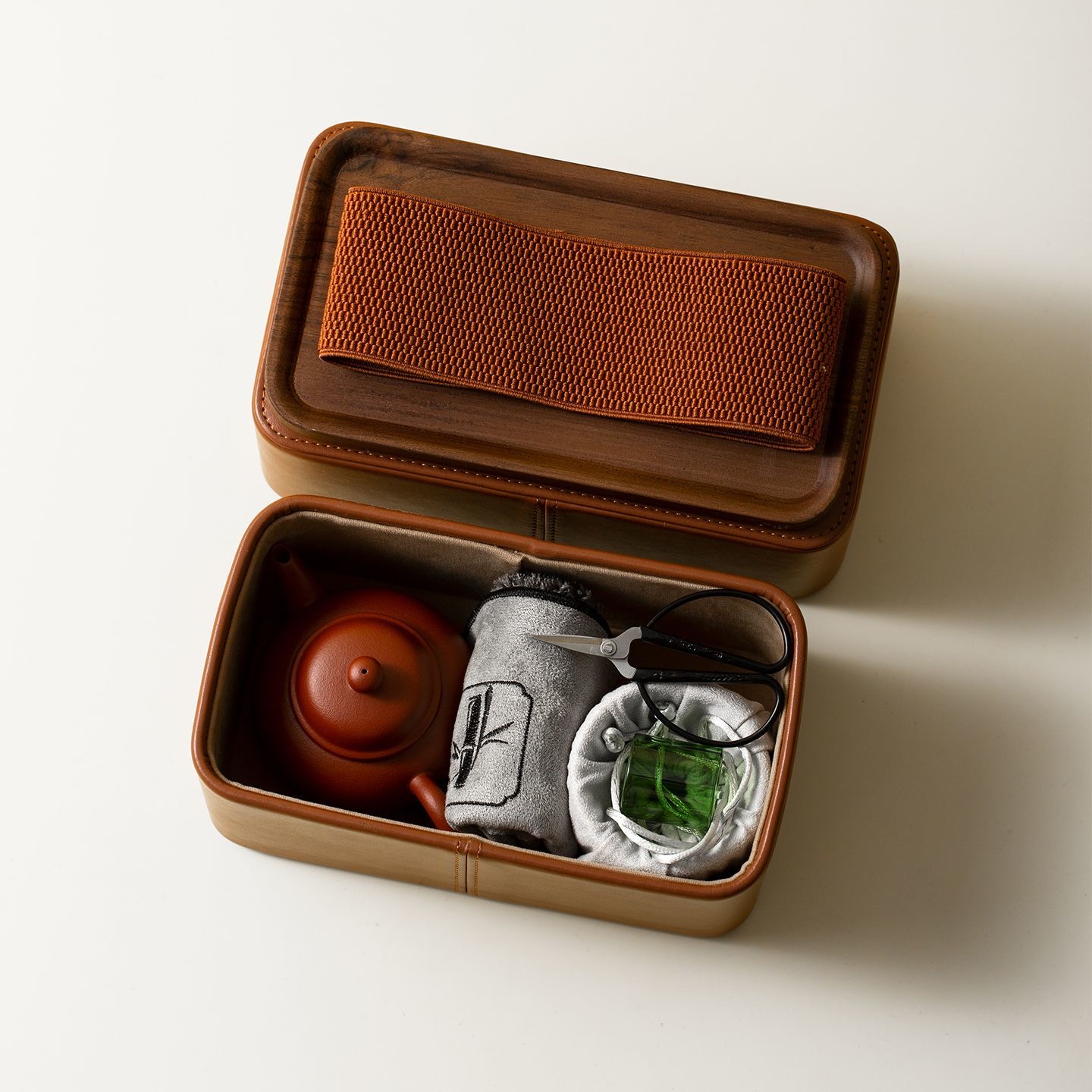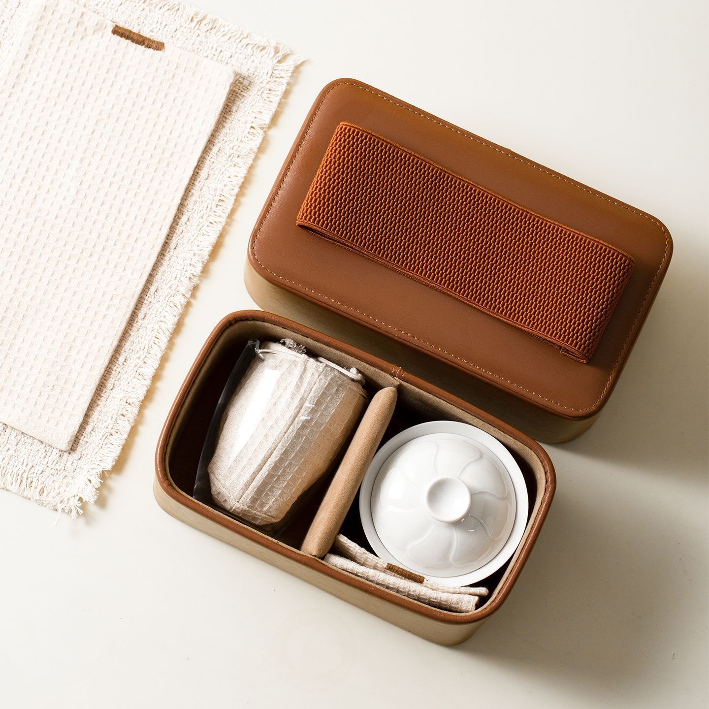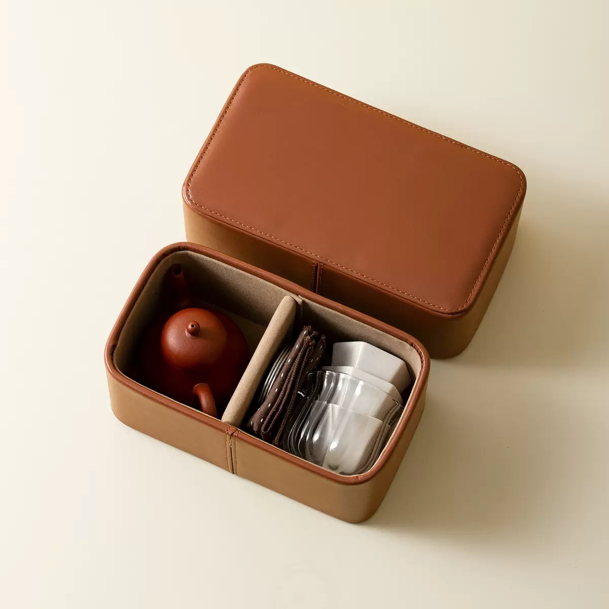 Home Accessories 高档旅行茶具小皮包收纳 户外茶具收纳包空盒 干泡茶具收纳包 茶壶包盖碗包High-end travel tea set storage small leather bag for tea utensils. Outdoor tea set storage bag with empty box. Dry-brew tea set storage bag. Tea pot bag, covered bowl bag.
